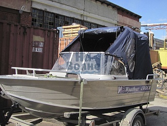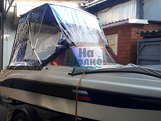 Тент с задней дверью для выхода к мотору, небольшими боковыми окнами и усиленными краями для установки застёжек. Изготовлен из специализированной тентовой ткани Оксфорд 600 повышенной плотности