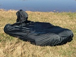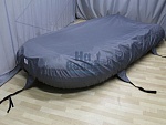Полная защита: Чехол полностью закрывает лодку, включая баллоны. По низу идет вшитая стропа для утяжки по периметру, что обеспечивает плотное прилегание и предотвращает попадание внутрь пыли и влаги.